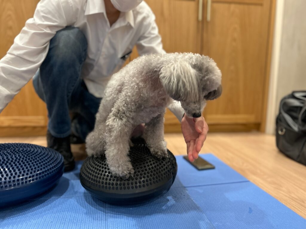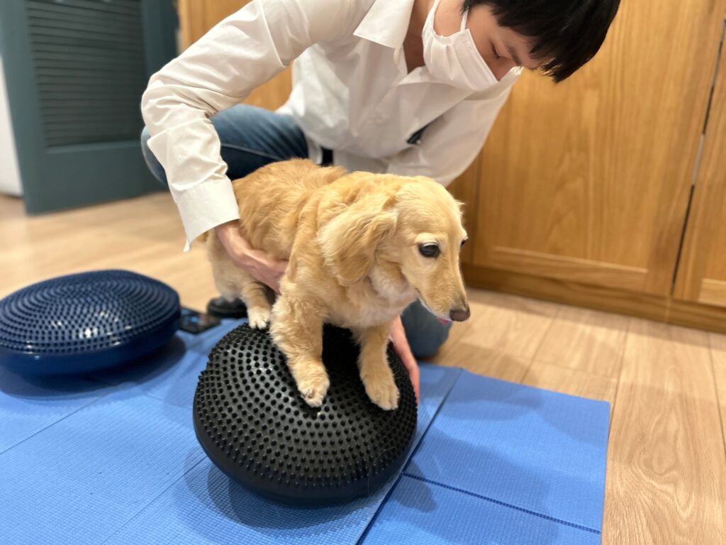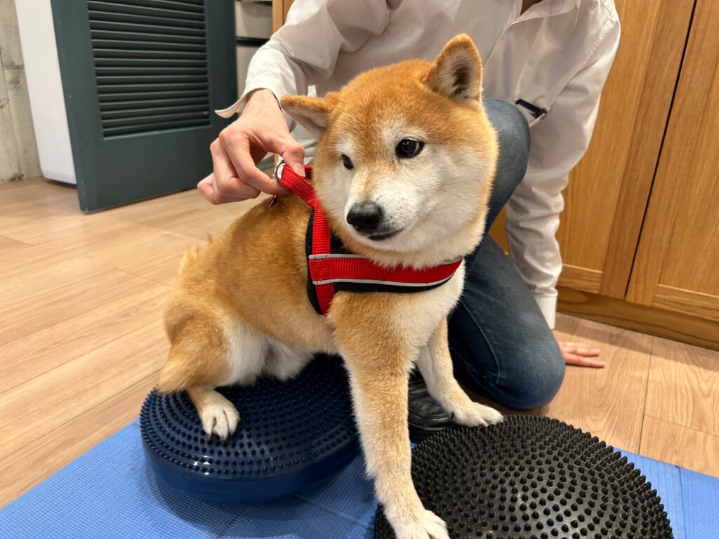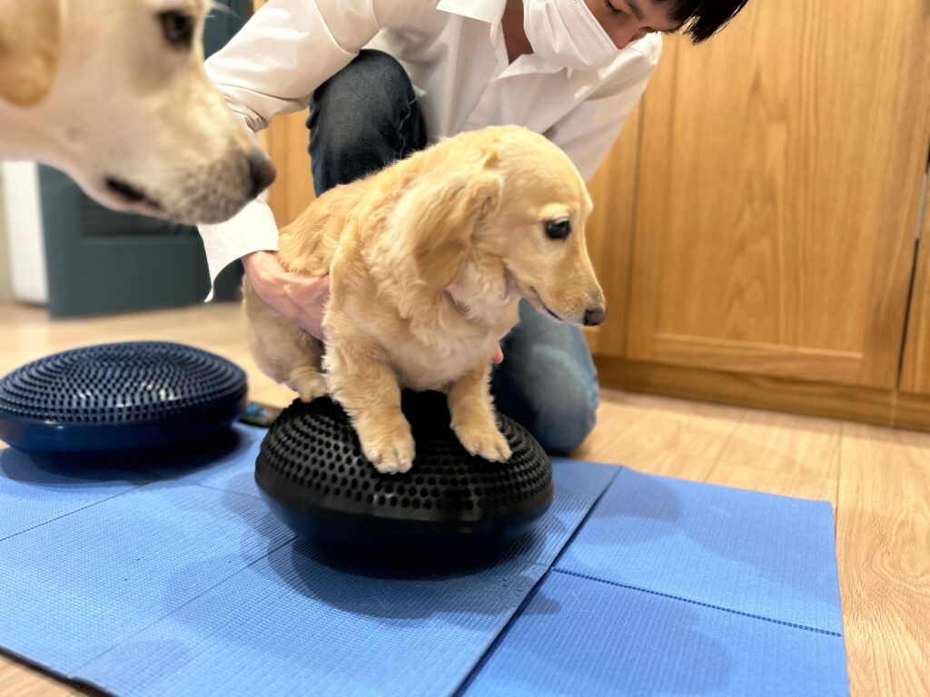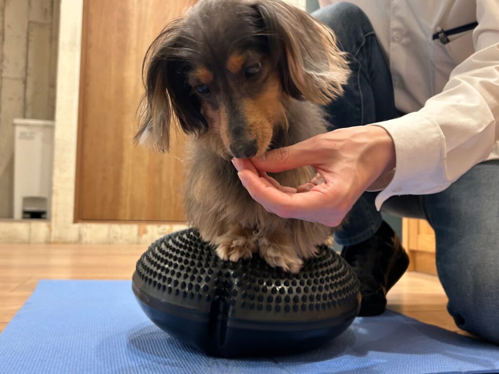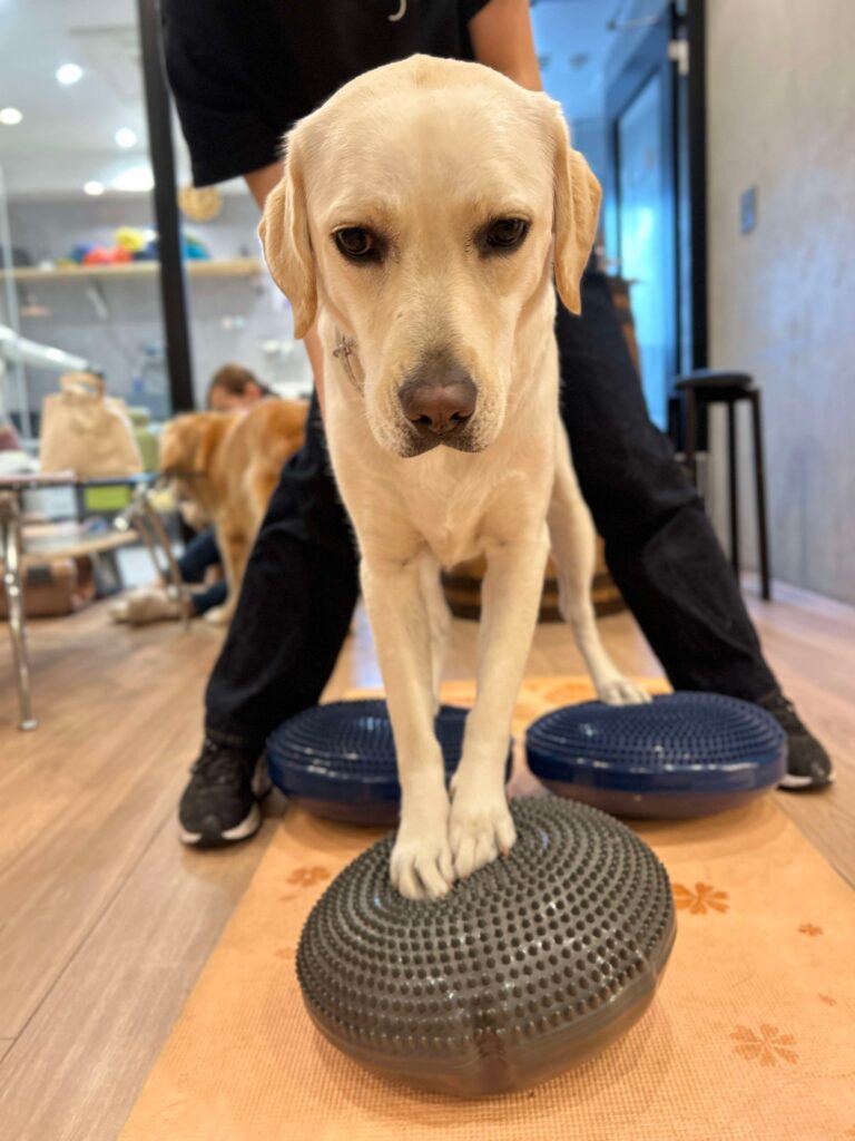これがやりたかったんだ〜♪と言うように、ルンルンでバランスディスクに乗っていました。