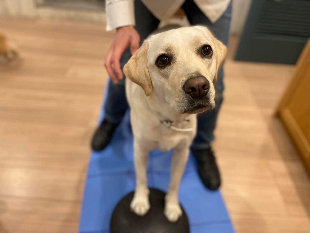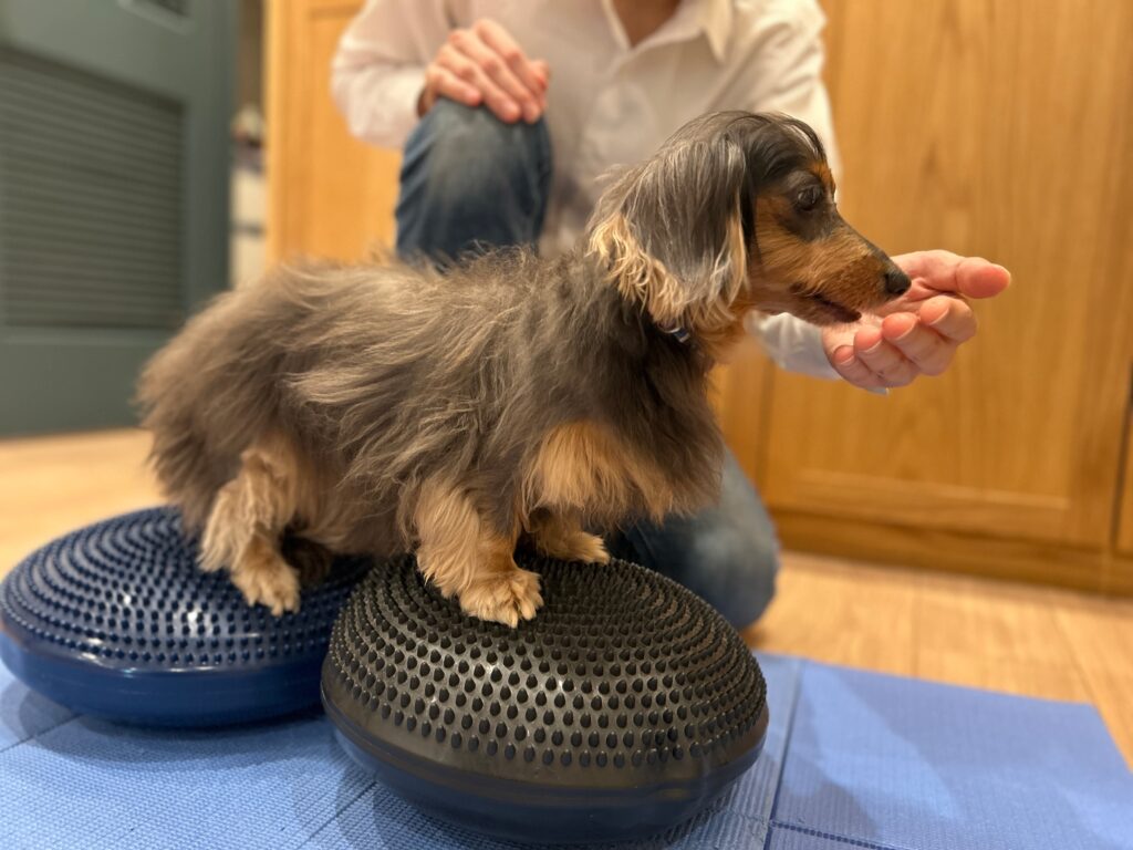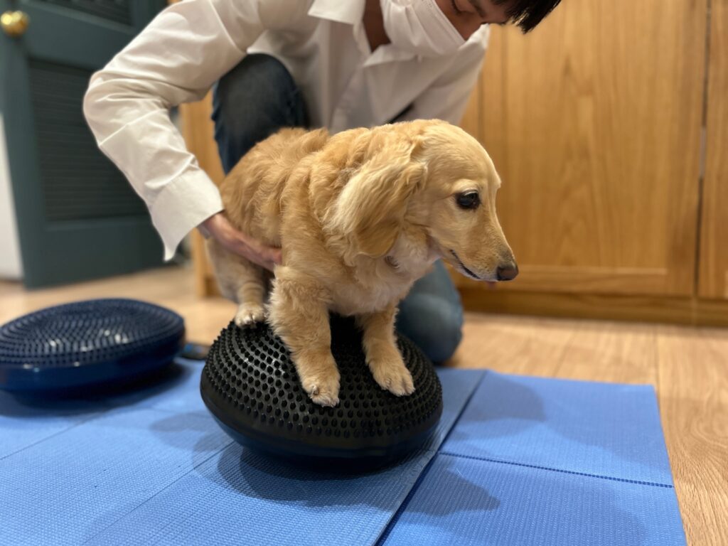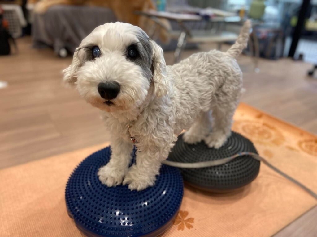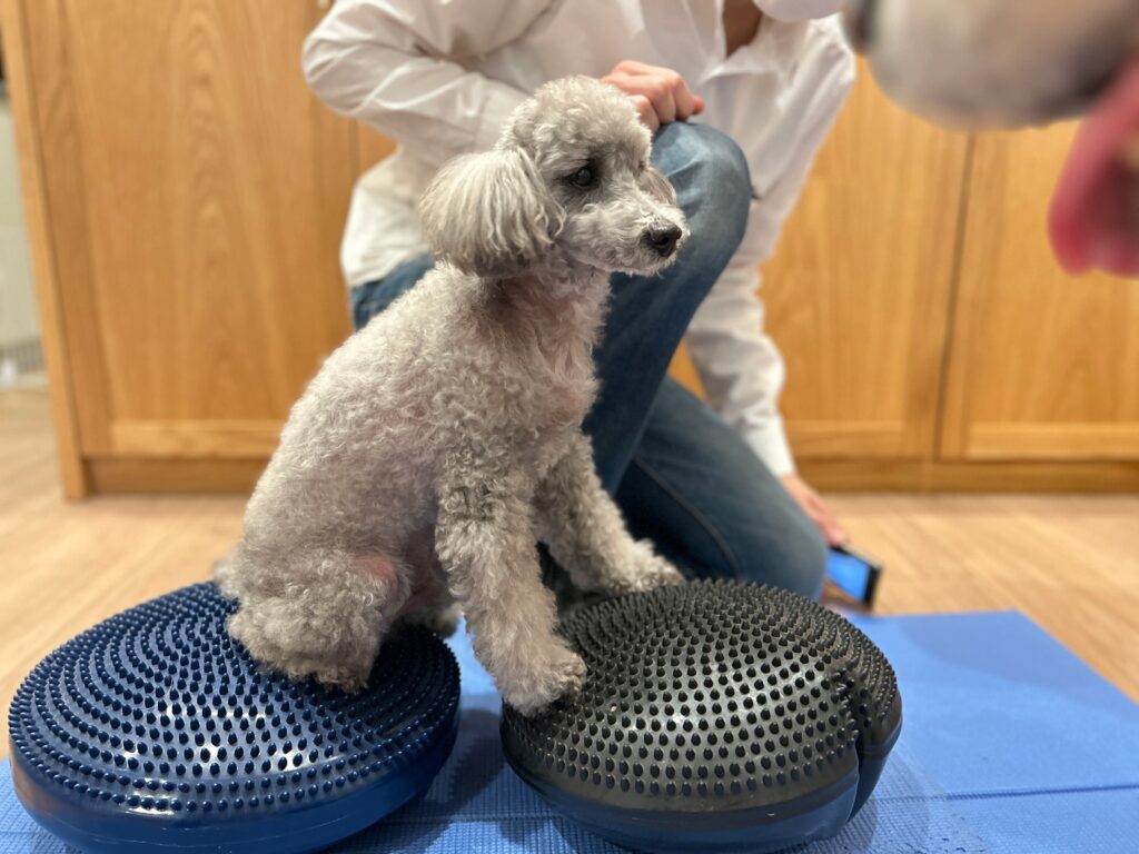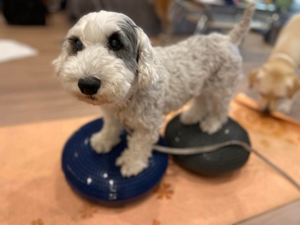 これがやりたかったんだ〜♪と言うように、ルンルンでバランスディスクに乗っていました。