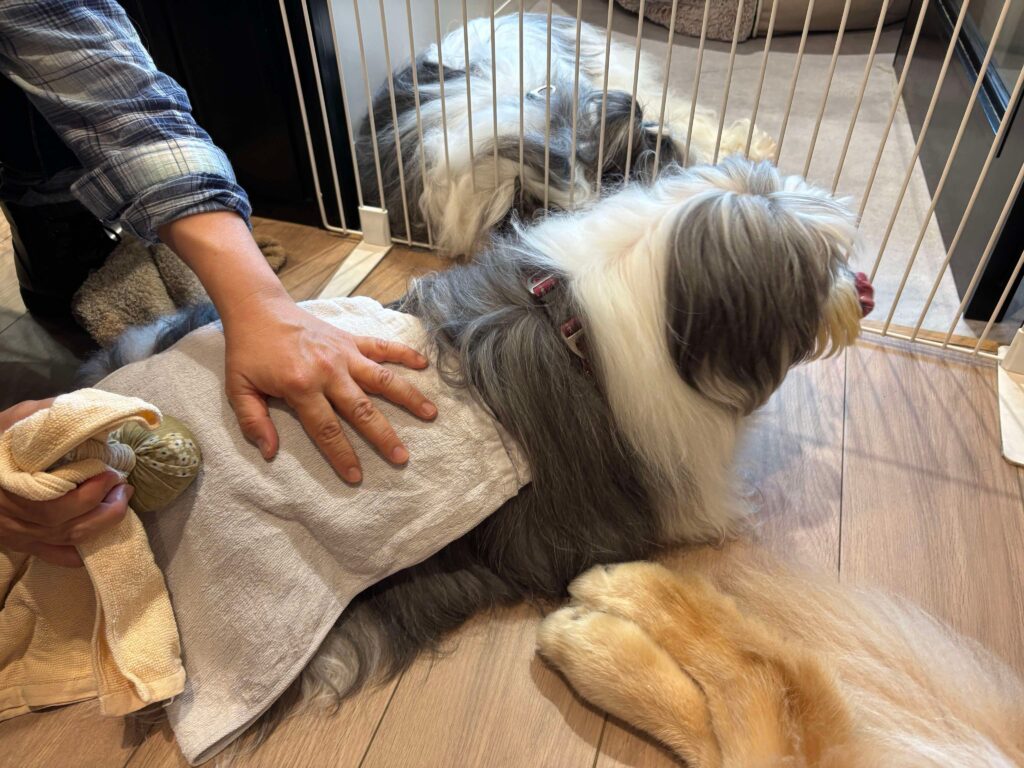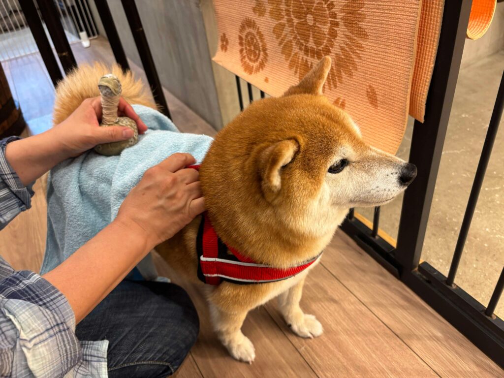 今回は少し後ろ足までマッサージ範囲を進出し、初めは少し気になっていましたが、受け入れるとOKみたいでした😆