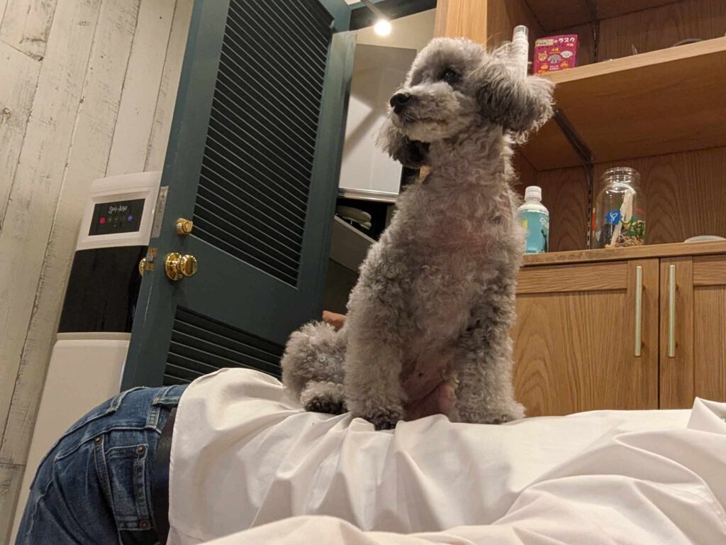 ライナスくんと同様、背中を手のひらでマッサージするのが気持ちよさそうでした💛