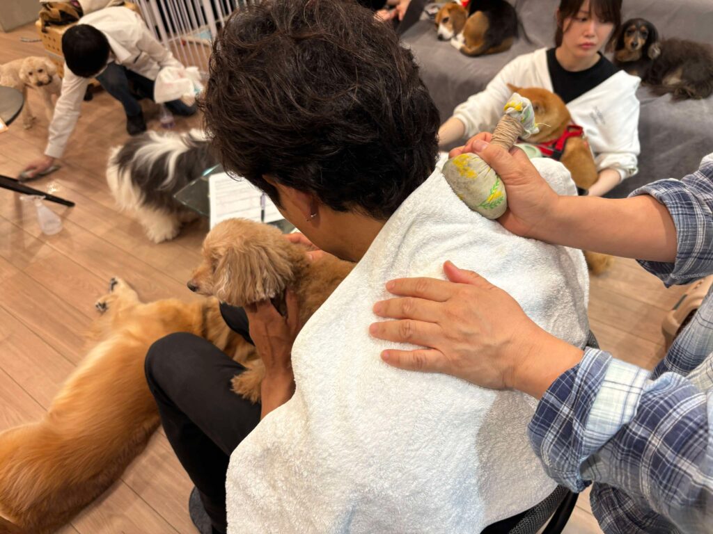背中全体をハーブボールで温め、手の平でマッサージ、気持ちよさそうでした☺️